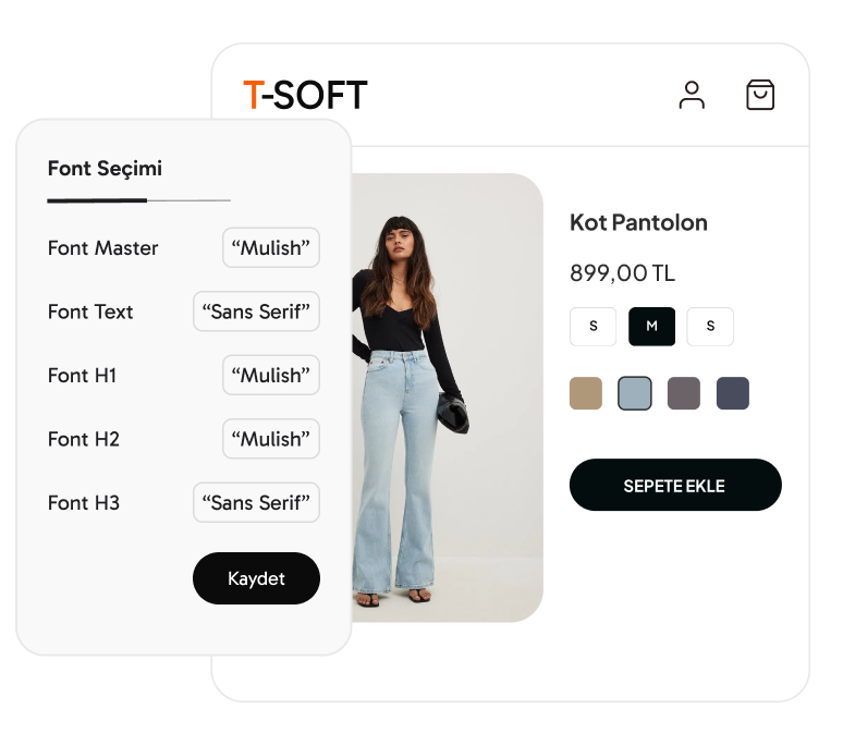 Store Front aracıyla renk, font, çerçeve ve içerik düzenlemelerinizi yaparak temayı kişiselleştirin.