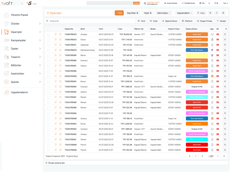 T-Soft e-ticaret çözümlerini ve ayrıcalıklarını denemeniz için; size özel online satış sitenizi Gerçek Ortamda kuruyoruz, 30 Gün Boyunca Ücretsiz Deneme Fırsatı sunuyoruz.